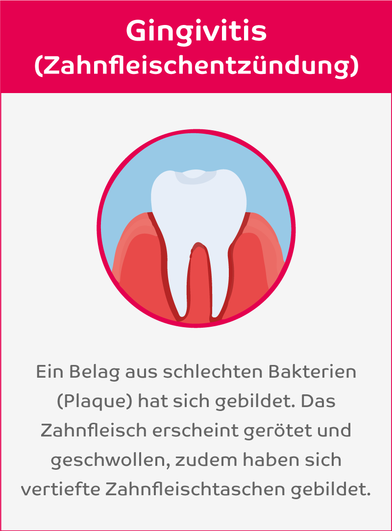 - Durch die Entzündung und zunehmende Ablagerungen weicht das Zahnfleisch zurück.